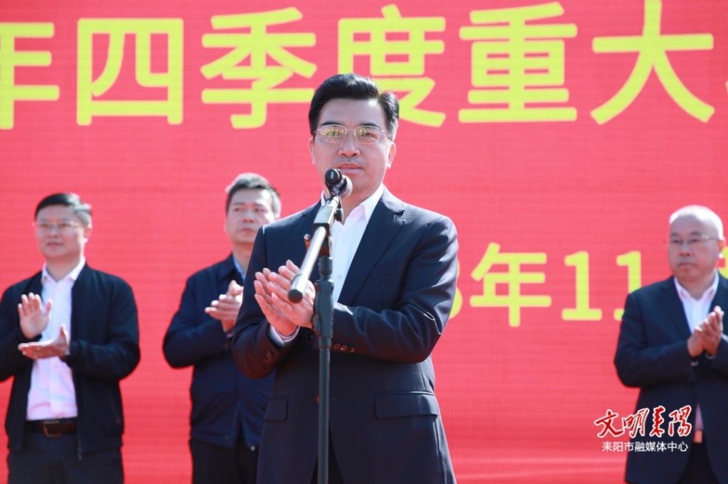 11月17日上午,耒阳市举行2023年四季度重大项目集中开工仪式。衡阳市委副书记、耒阳市委书记赖馨正宣布开工,省高速集团耒宜分公司董事长方来出席,耒阳市委副书记、市长尹立鑫致辞。