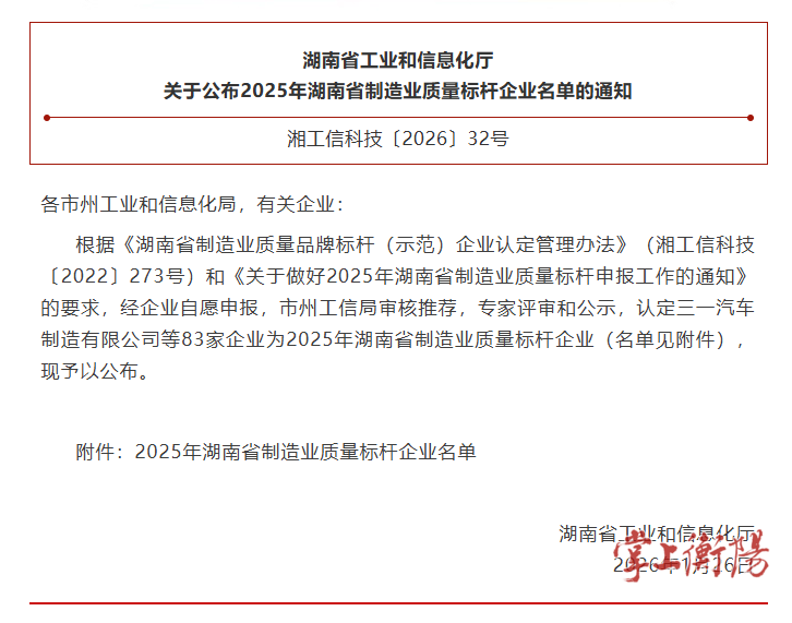 近日,湖南省工业和信息化厅公布2025年度制造业质量标杆企业名单,位于衡东县的湖南东健药业有限公司成功入选。