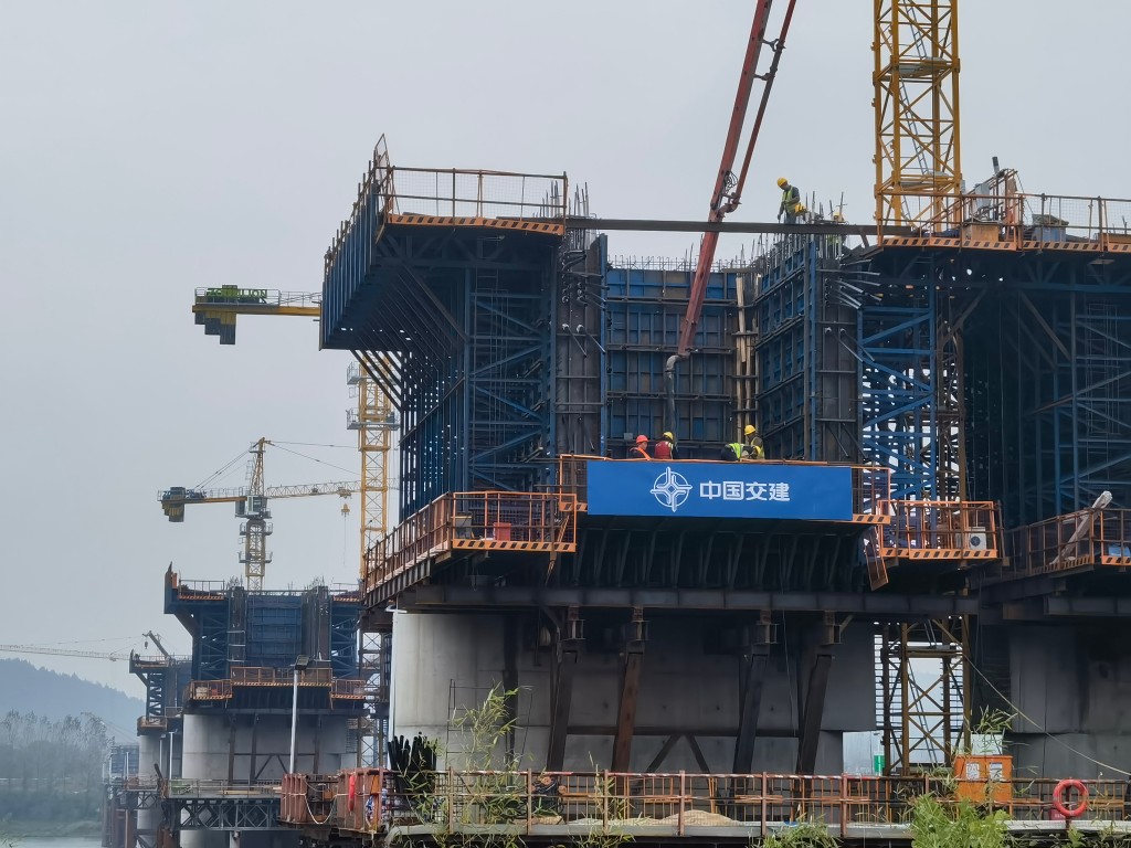 经过约10小时连续作业,顺利完成董家潭湘江特大桥主跨首个0#块首件工程浇筑。