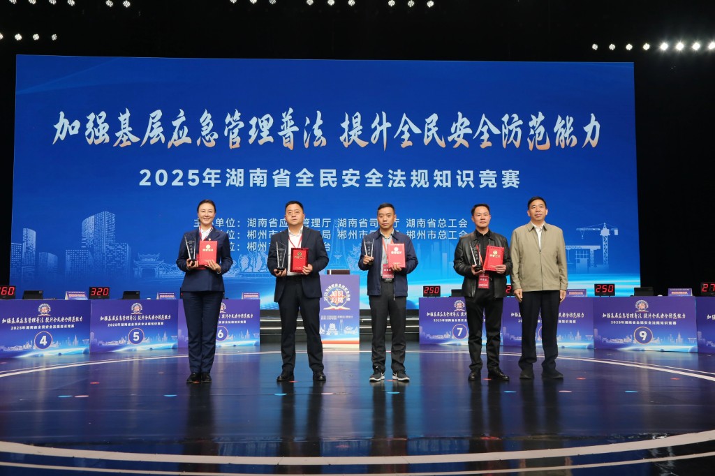 10月28日,省应急管理厅、省总工会、省司法厅主办的2025年湖南省全民安全法规知识竞赛在郴州市圆满落幕,由4名队员组成的衡阳市代表队凭借扎实的知识储备与出色的团队协作,从众多参赛队伍中脱颖而出,继2024年之后再次荣获二等奖,为衡阳赢得荣誉。