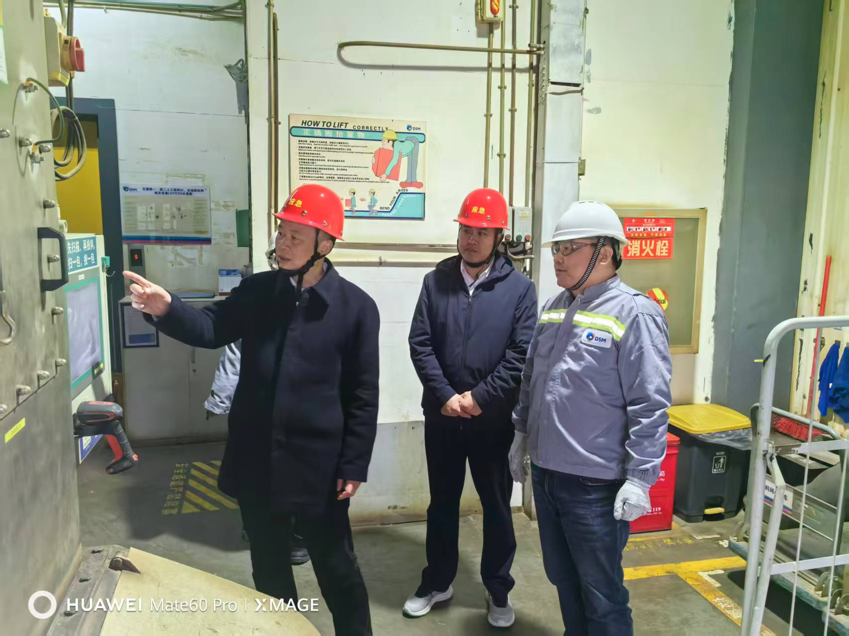 随后,蒋小利来到帝斯曼维生素公司,指出该公司风险管控、安全管理、安全生产基础具有复杂性、动态性,要在全员安全生产责任制落实和安全管理上久久为功、持续发力;要持续加强员工安全培训,提升一线员工操作技能;要根据企业生产工艺特点和工艺流程,重点排查涉爆粉尘、有限空间作业等方面的重大事故隐患;要持续强化应急演练,不断提升应急队伍的实战经验和全体员工的自救互救技能。