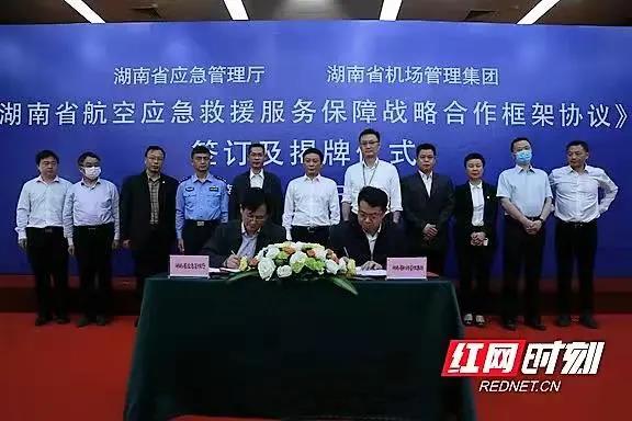 ▲湖南省应急管理厅与湖南省机场管理集团签订《湖南省航空应急救援服务保障战略合作框架协议》。