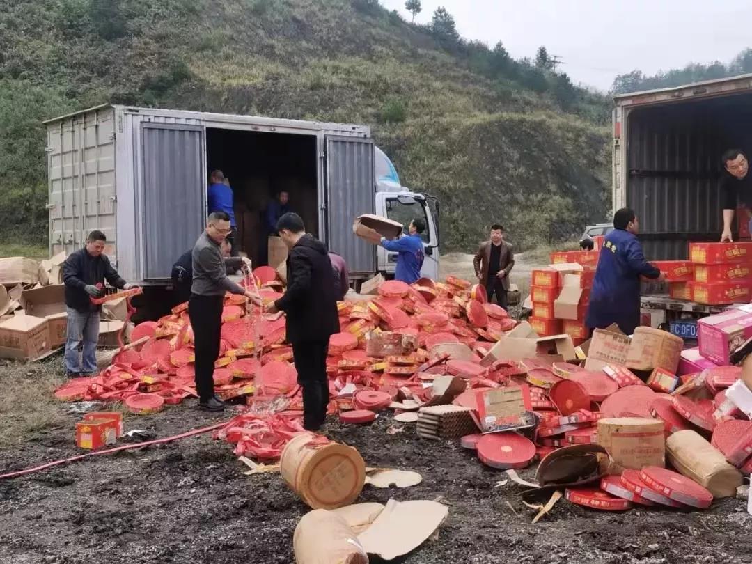 10月26日,新晃侗族自治县深入开展百日大会战,集中销毁非法烟花爆竹400余件。