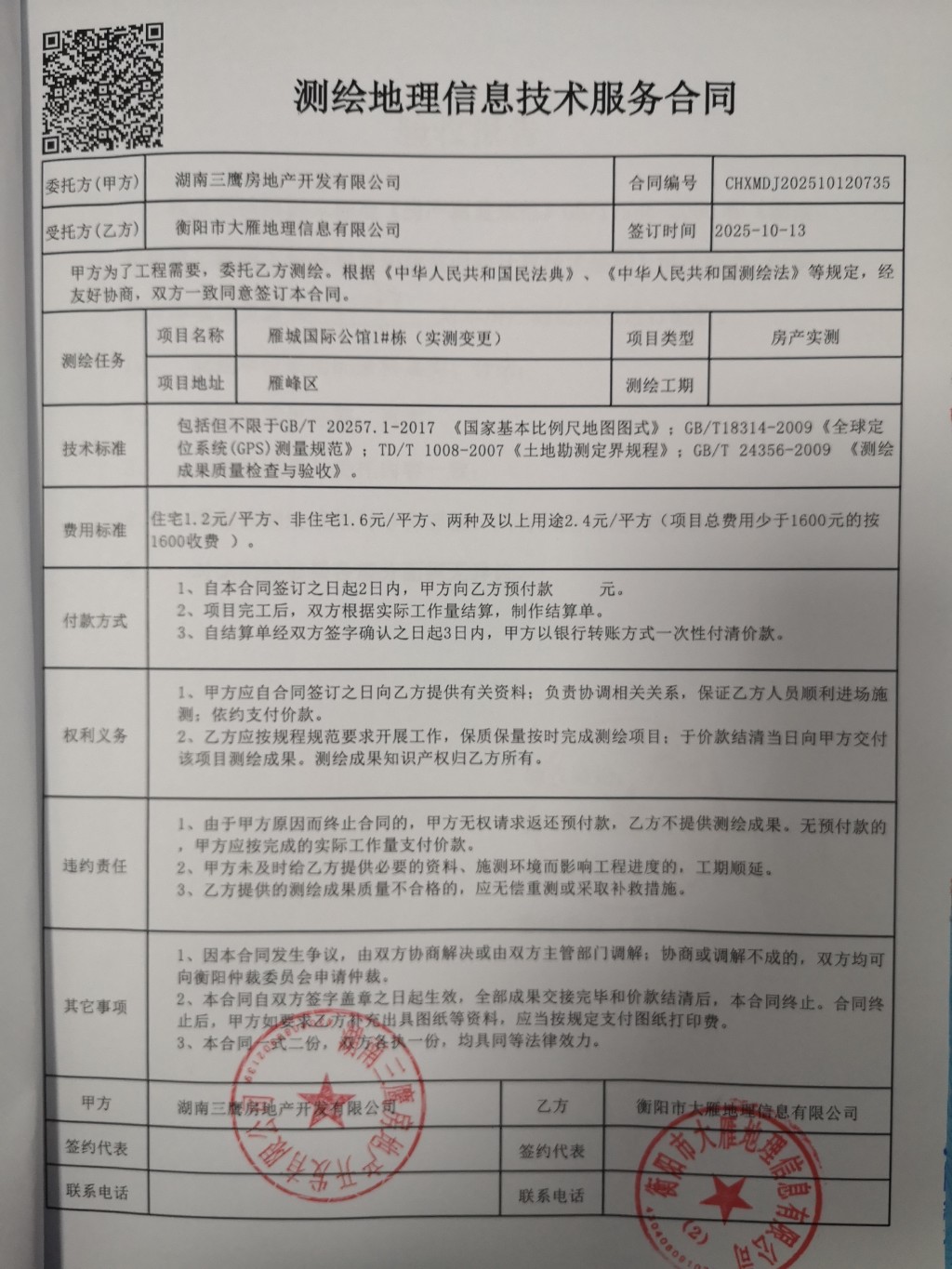 雁城国际公馆1#楼实测变更实测变更成果公示
