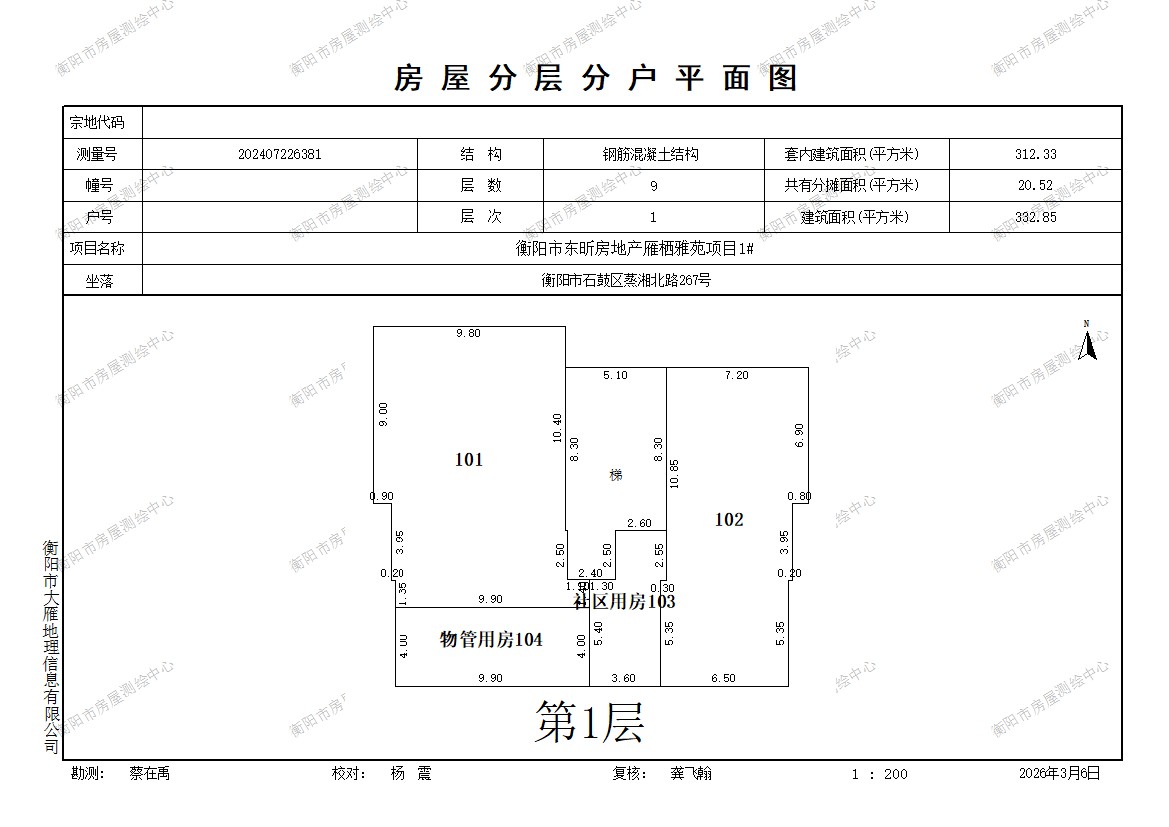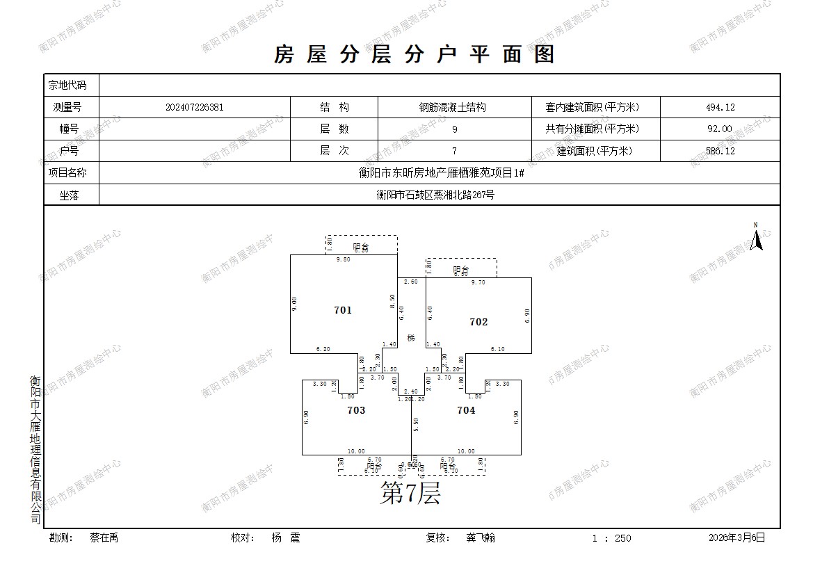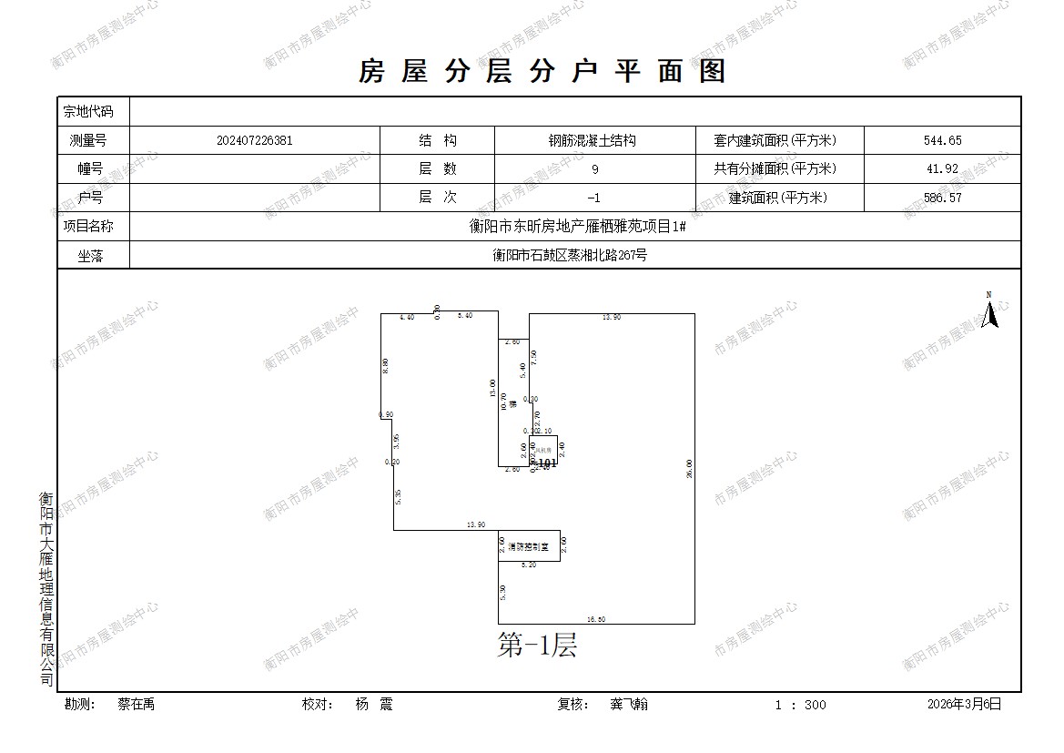 衡阳市东昕房地产雁栖雅苑项目1#实测绘成果公示