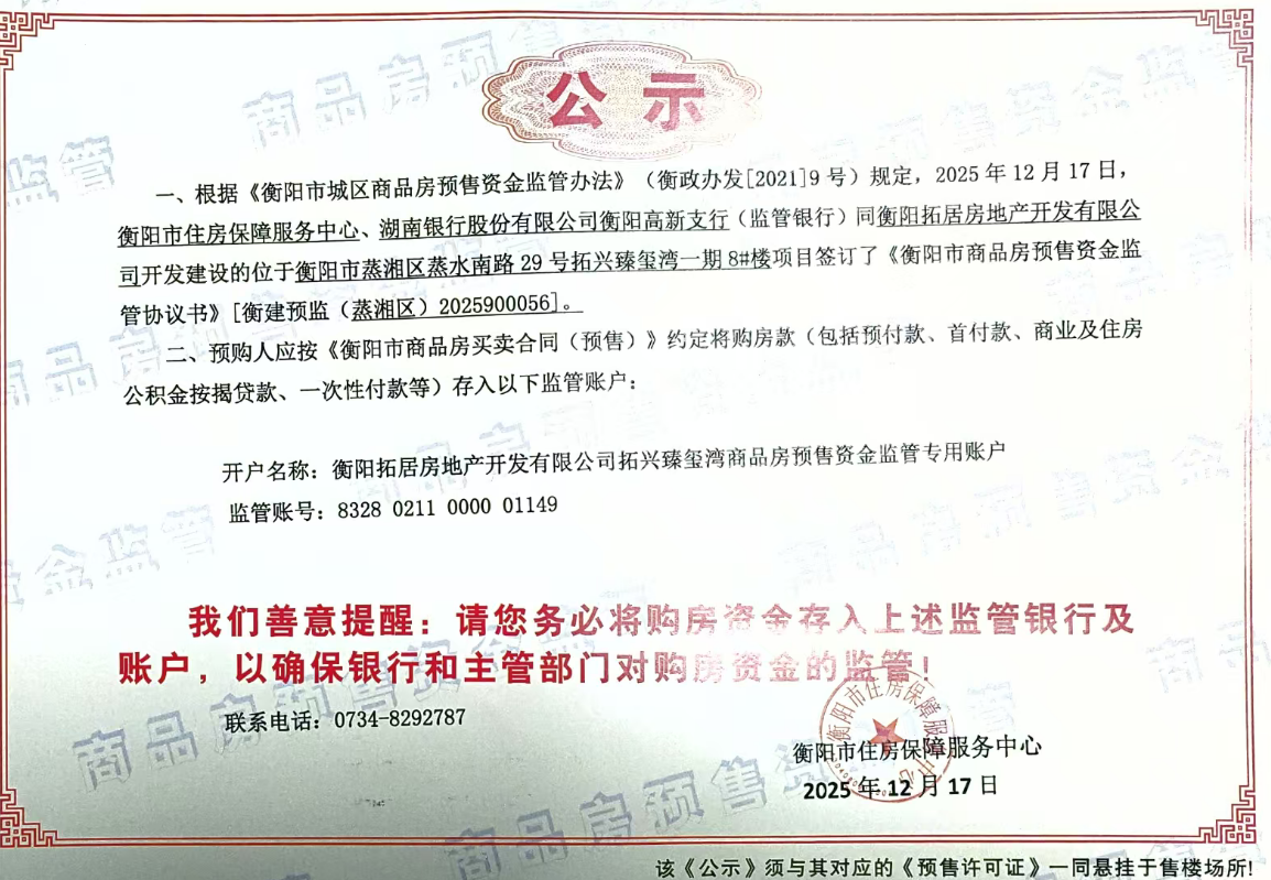 关于“拓兴臻玺湾一期8#楼”监管账户的公示