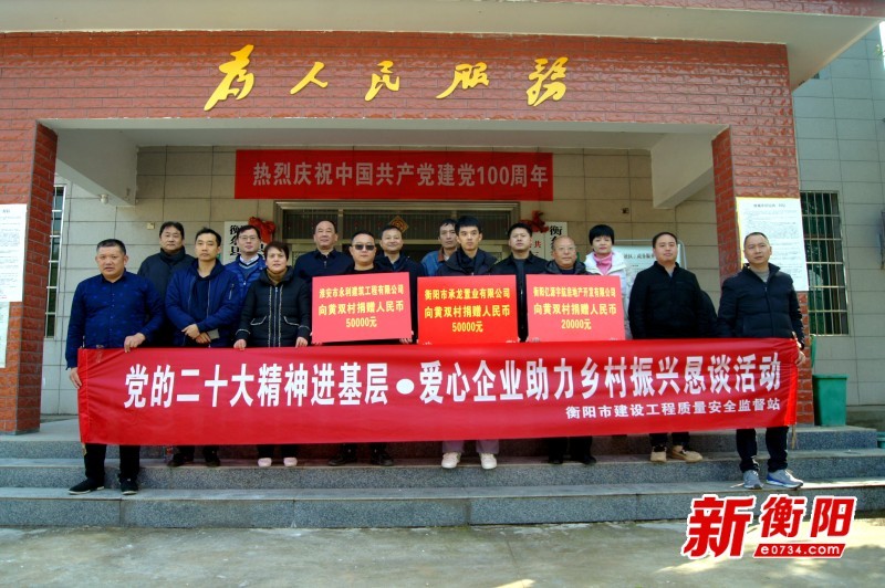 民族要复兴,乡村必振兴。12月9日,衡阳市建设工程质量安全监督站组织党员干部、爱心企业赴衡东县三樟镇黄双村开展“党的二十大精神进基层·爱心企业助力乡村振兴恳谈活动”。三家爱心企业当场捐款12万元。