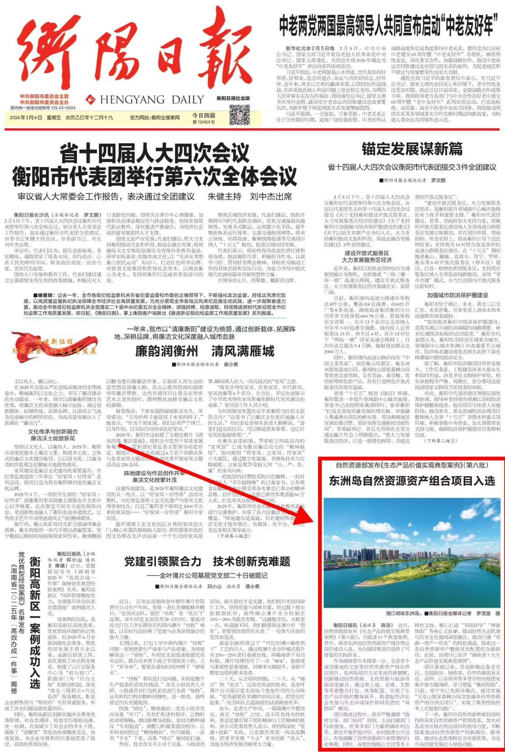 衡阳日报头版|东洲岛自然资源资产组合项目入选自然资源部《生态产品价值实现典型案例》(第六批)