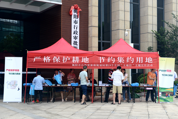 6月25日,衡阳市自然资源和规划局开展第29个全国土地日系列宣传活动,以“严格保护耕地,节约集约用地”为主题,向群众号召在节约用地的同时,还要合理合法用地,进一步加强衡阳市的土地管理工作。