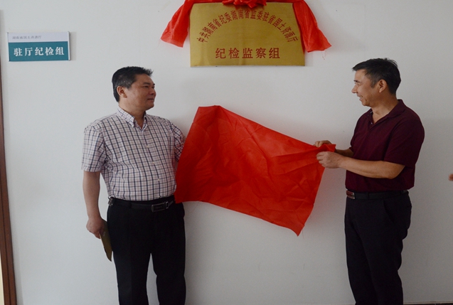 6月13日,中共湖南省纪委湖南省监委驻省国土资源厅纪检监察组在省厅举行揭牌仪式,副厅长王善明、驻厅纪检组长唐新民共同揭牌。副厅级纪检员彭利萍及相关处室负责人参加仪式。