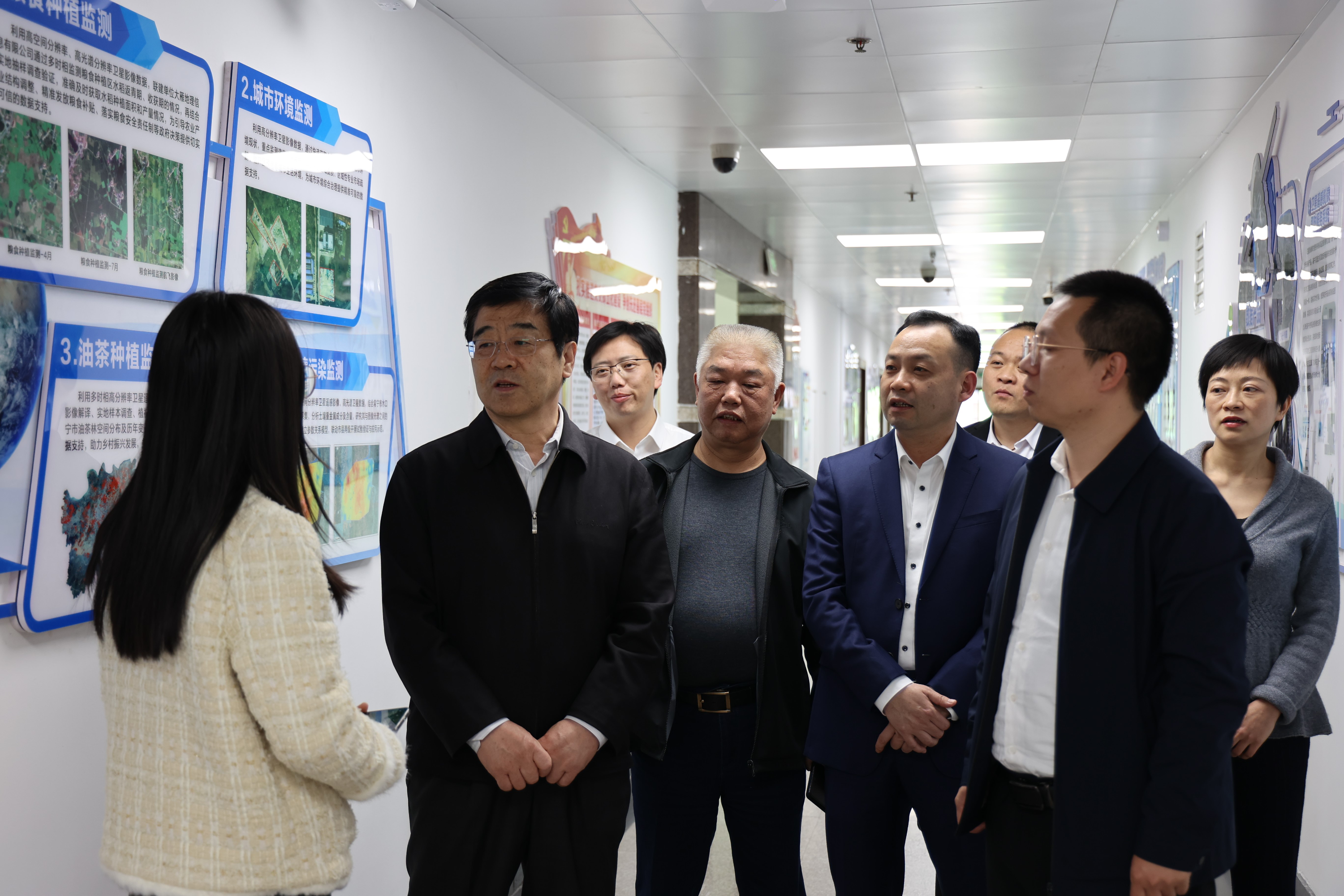 图为李维森(左二)参观衡阳市自然资源卫星应用技术中心。