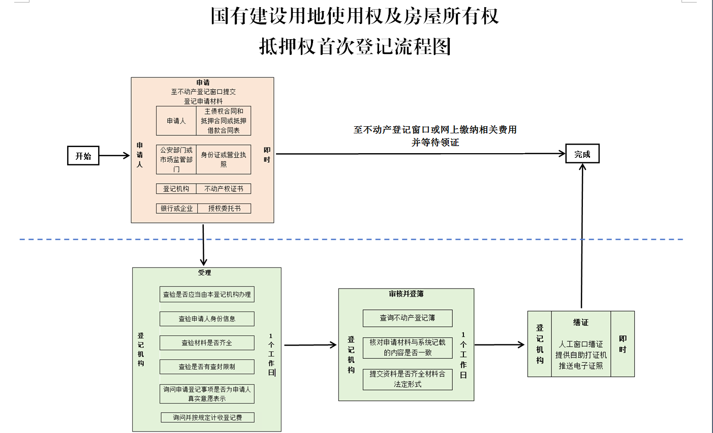 国有建设用地使用权及房屋所有权抵押权首次登记流程图