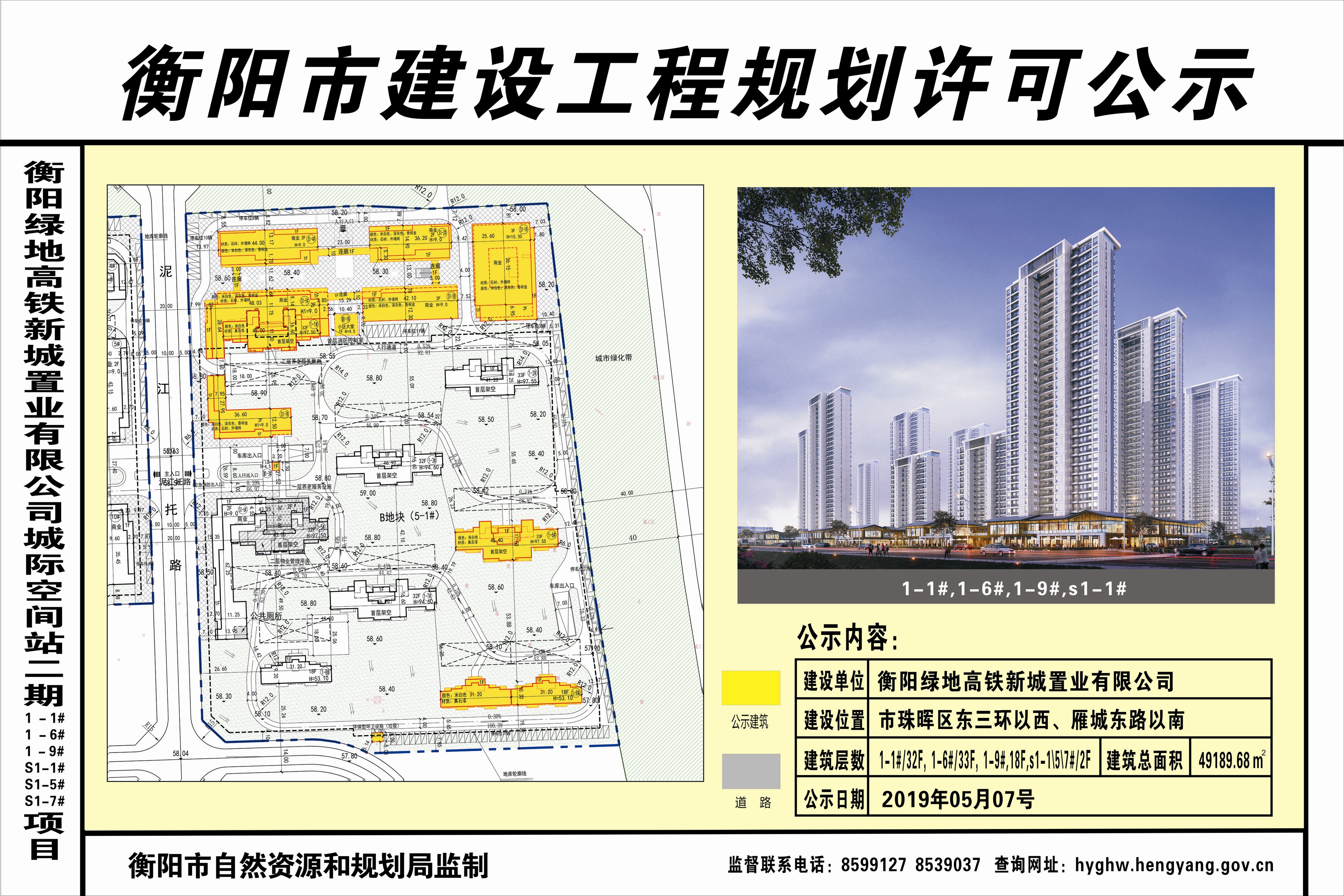 衡阳绿地高铁新城置业有限公司城际空间站二期1-1#、1-6#、1-9#、S1-1#、S1-5#、S1-7#项目工程规划许可公示