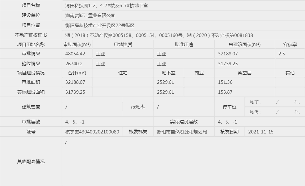 湾田科技园1-2、4-7#楼及6-7#楼地下室项目竣工综合验收公告