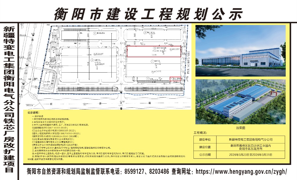 新疆特变电工集团衡阳电气分公司铁芯厂房改扩建项目建设工程规划公示