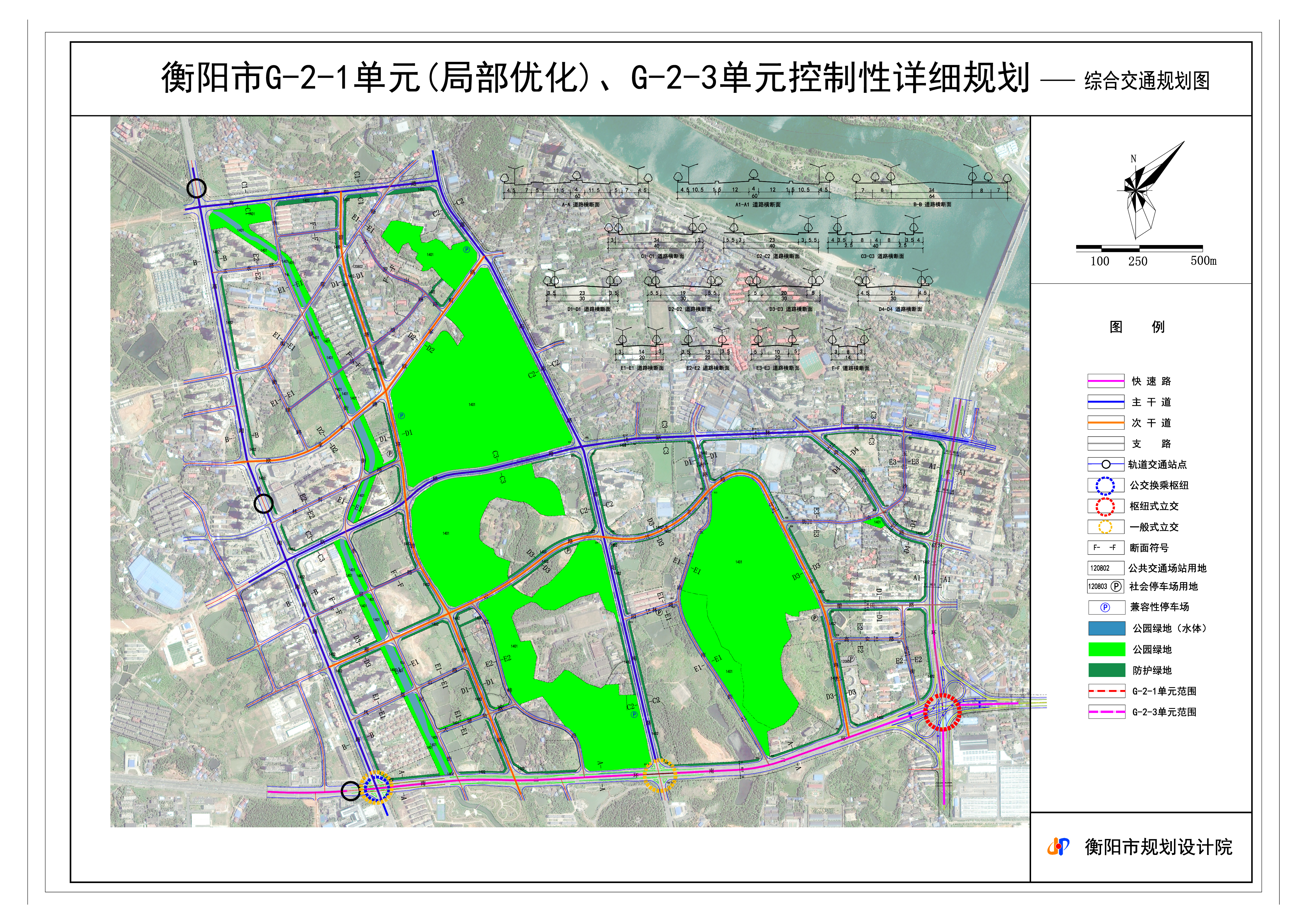 衡阳市自然资源和规划局、衡阳国有资产投资控股集团有限公司委托衡阳市规划设计院编制了《衡阳市G-2-1单元、G-2-3单元控制性详细规划》。其中G-2-1单元经市国土空间规划委员会第三十一次专题会审议通过并完成了公示,本次因军事用地土地收储需要进行局部修改,并与相邻单元G-2-3单元合并编制。目前该两个单元控制性详细规划已通过专家评审、部门联审,并经市国土空间规划委员会第三十四次专题会审议原则同意。规划主要内容如下: