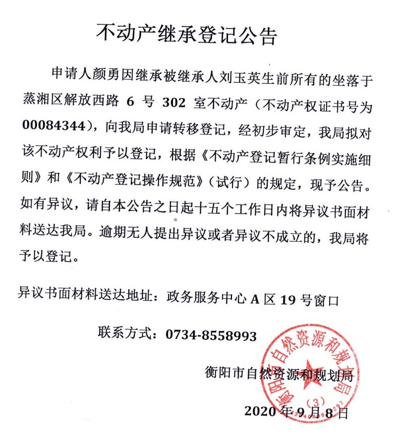 关于刘玉英不动产继承权的公告