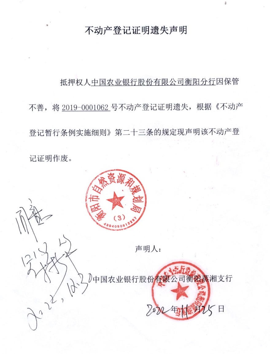 关于欧豪不动产登记证明遗失的公告