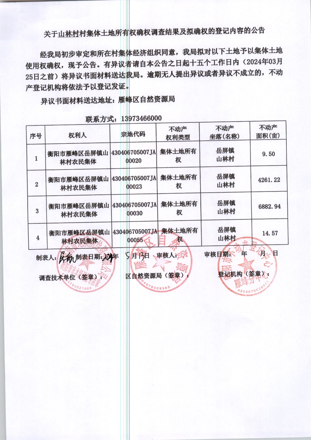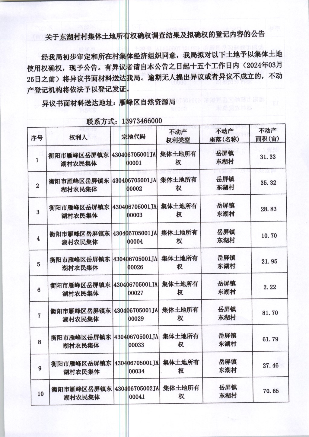 关于东湖村集体土地所有权确权调查结果及拟确权登记内容的公告