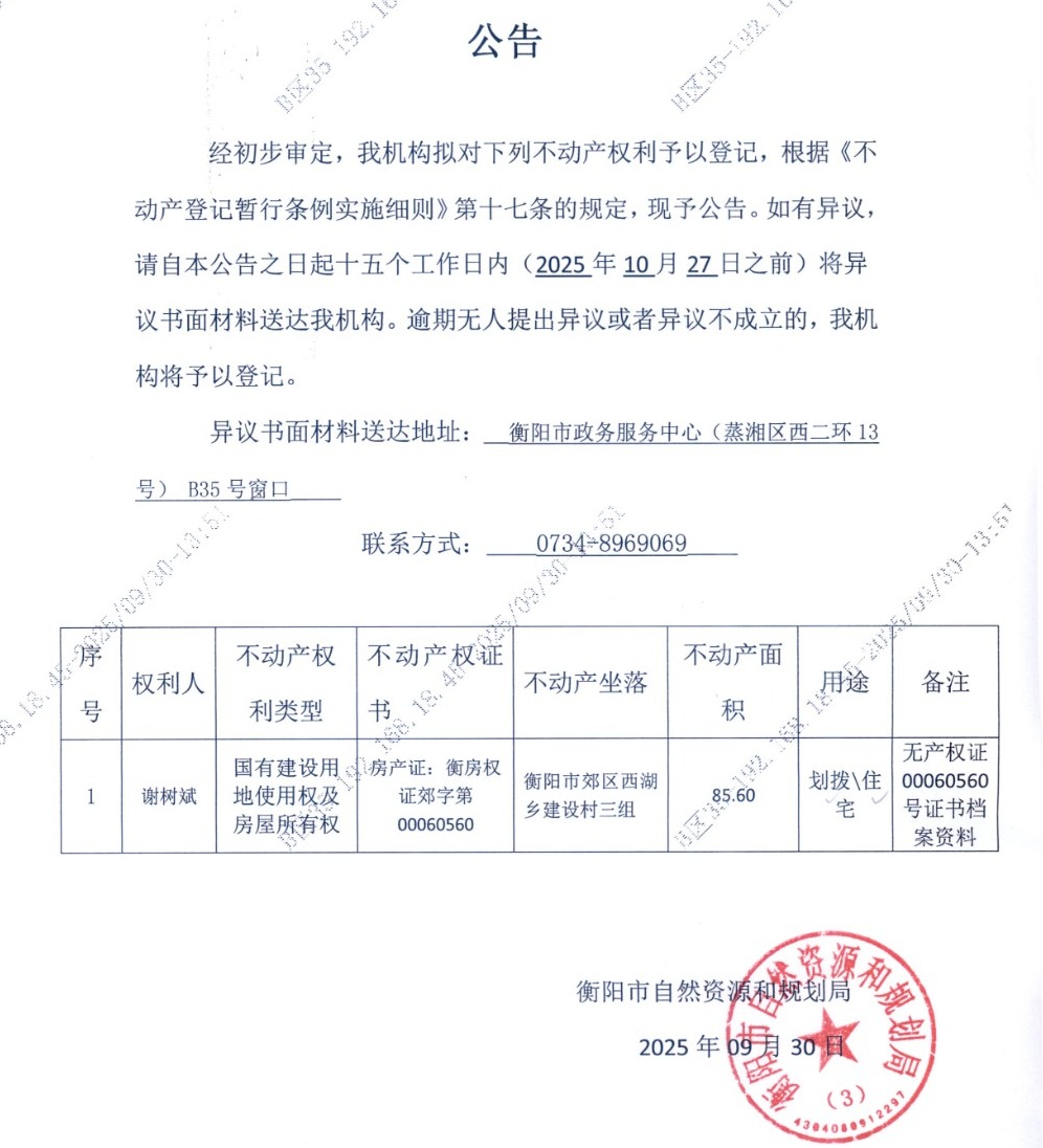 关于谢树斌房产证更正公告