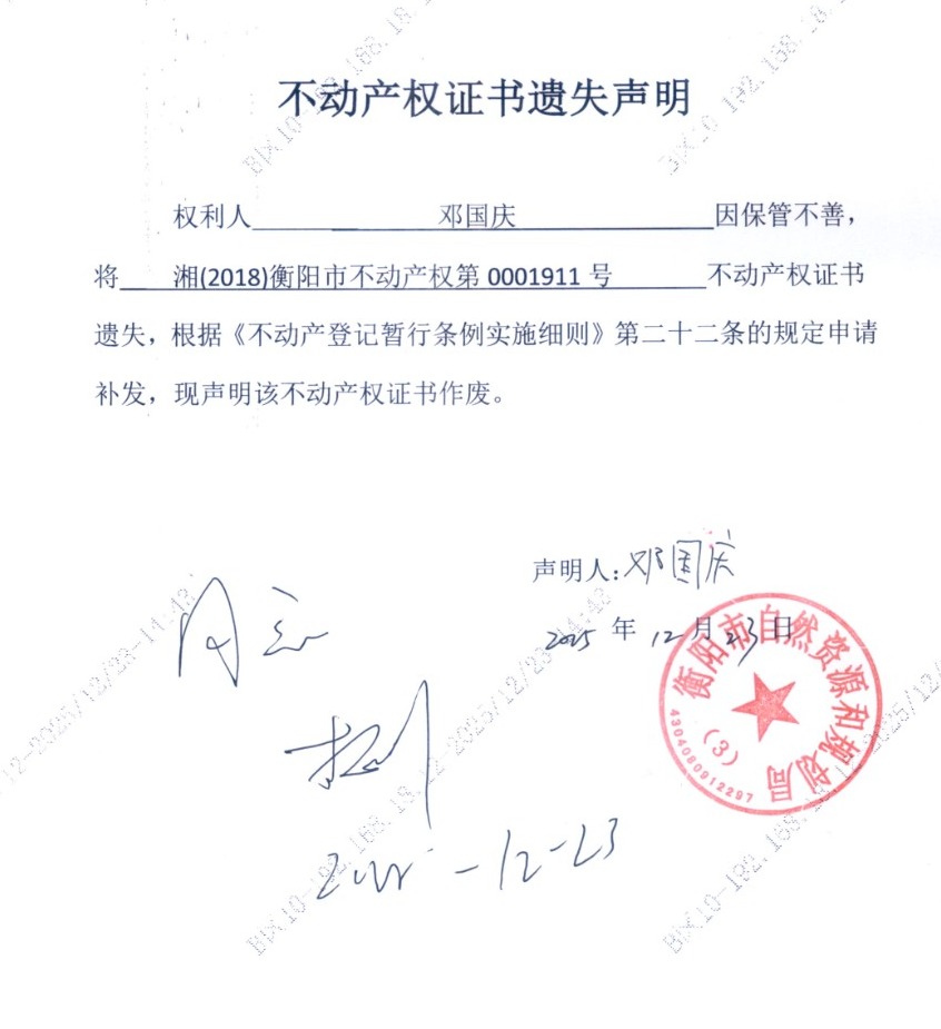 关于邓国庆不动产权证书遗失声明