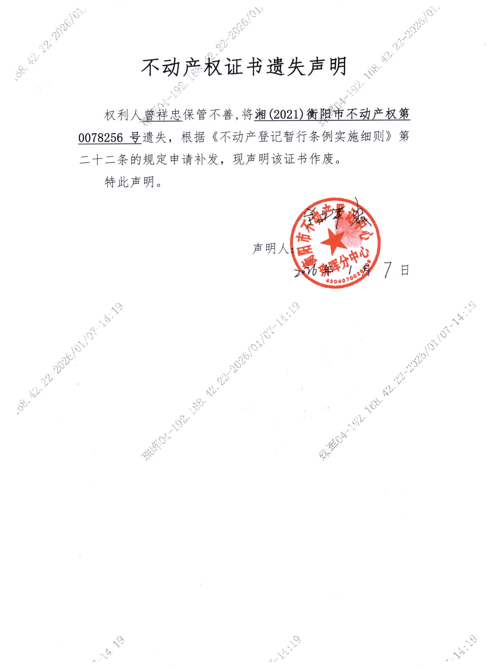 关于曾祥忠不动产证书遗失公告