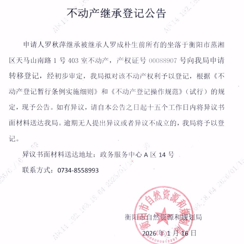 关于罗秋萍继承罗成朴不动产登记的公告