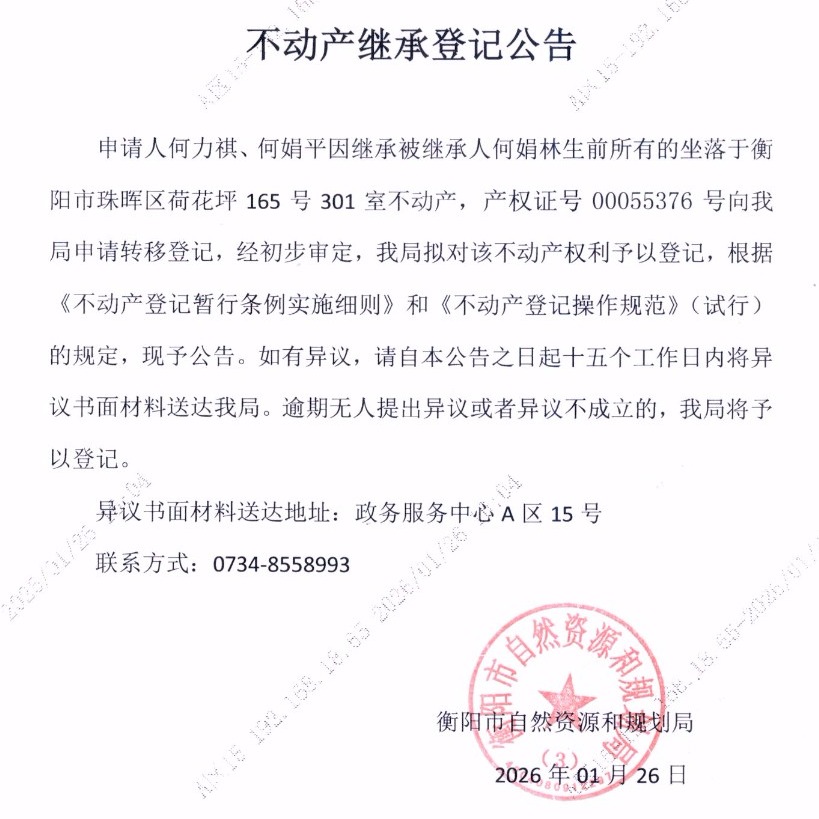 来源:衡阳市不动产登记中心
