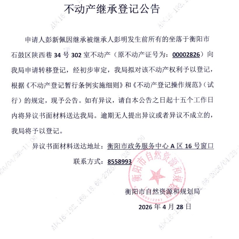 来源:衡阳市不动产登记中心