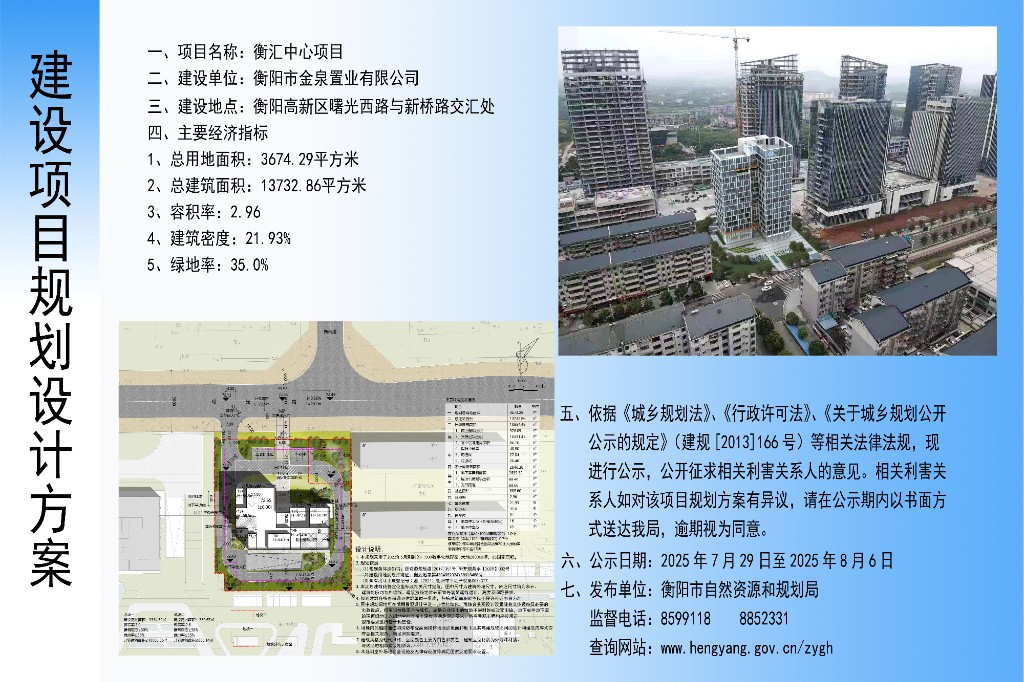 衡阳市金泉置业发展有限公司衡汇中心项目规划方案公示