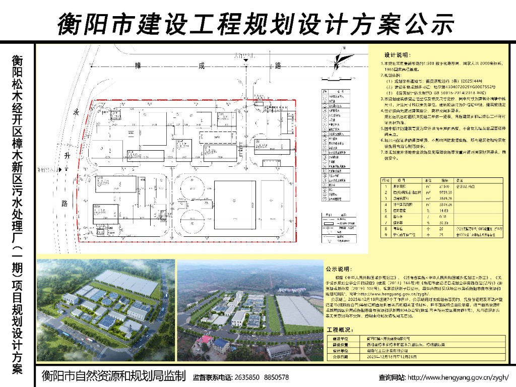 衡阳松木经开区樟木新区污水处理厂(一期)项目规划设计方案公示