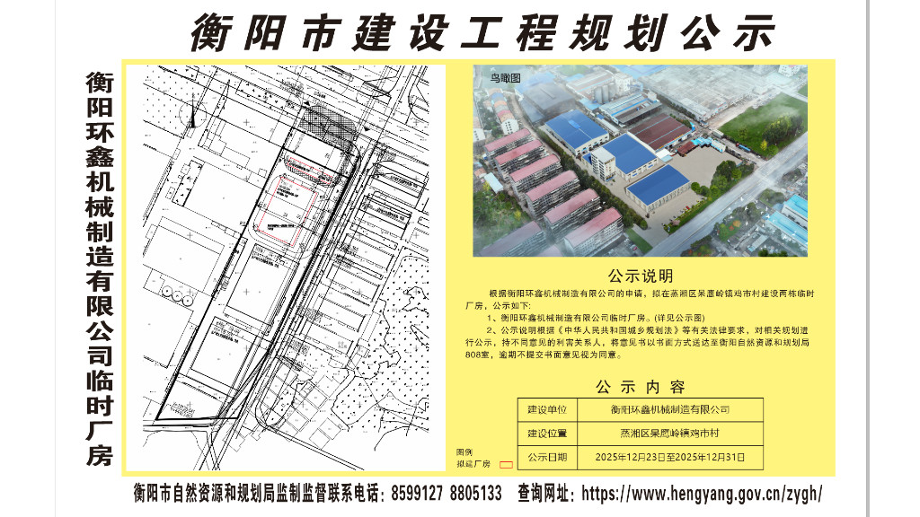 衡阳环鑫机械制造有限公司临时厂房建设工程规划公示
